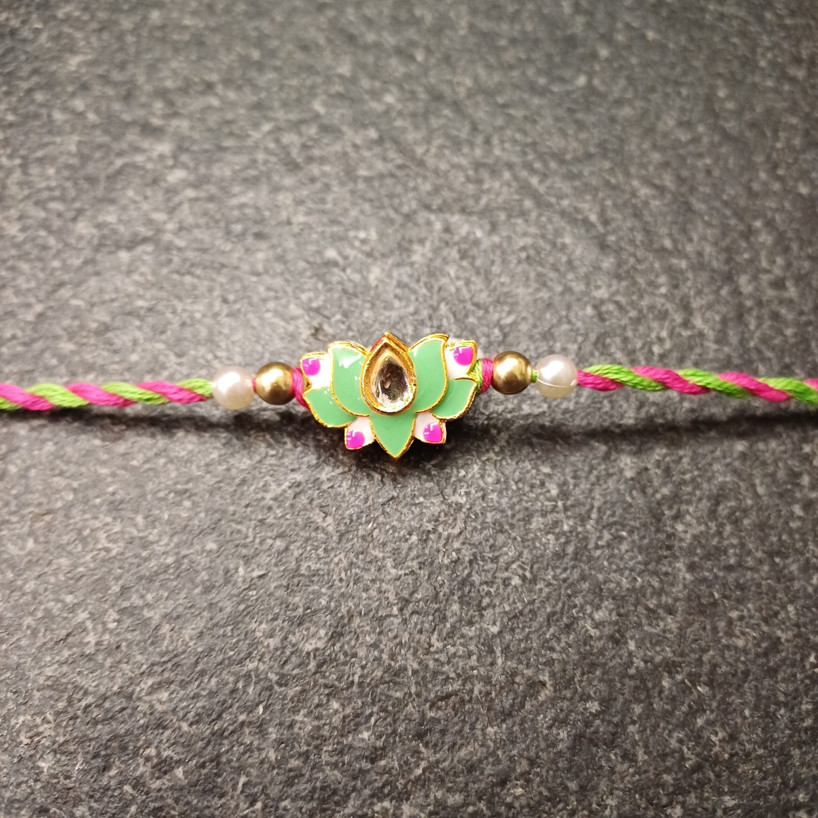 Green Lotus Kundan Rakhi | Brother Rakhi | Kundan Design | Handmade | Raksha Bandhan | Chakalia | Gift Elegantly